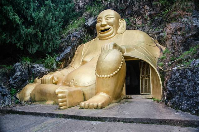 这就是麟隐石林地下溶洞景区的大门。为何门口用弥勒佛像呢?因为弥勒佛代表这大腹能容天下难容之时,所以能够容纳全世界所有的一切众生来这里欣赏、并得到佛祖的加被以得到净化。开口大笑则表示人面带一切事物要淡定,一定要乐观的面对并解决问题,这样的人生才会圆满嘛。
