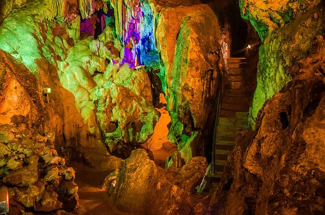 迷宫般的地下溶洞还有条后来人工辛辛苦苦开凿出来的阶梯进入其他溶洞里观赏,整个溶洞气温很低,给人一种非常凉爽的感觉,夏季是最好的选择了。