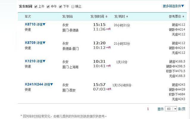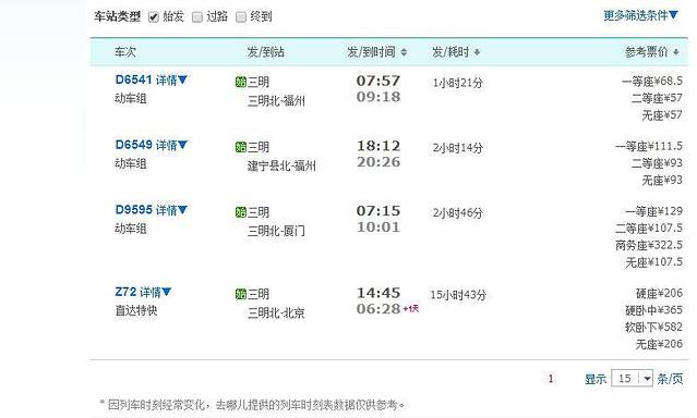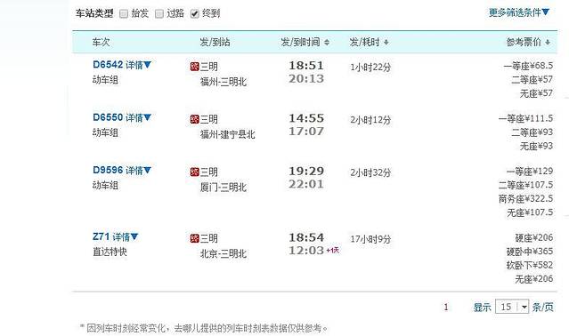 三明地处京福高铁线与鹰厦线上,所以过路车非常的多,几乎可以通通达全国各地了,始发与终到车次如下: