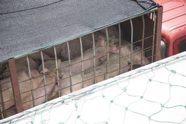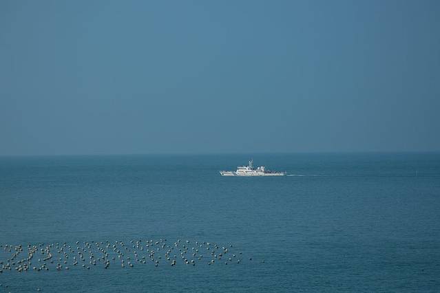 觉得奇怪,船上除了海鲜的味道怎么还有活猪肉的味道,哈哈,原来我们同船🐽