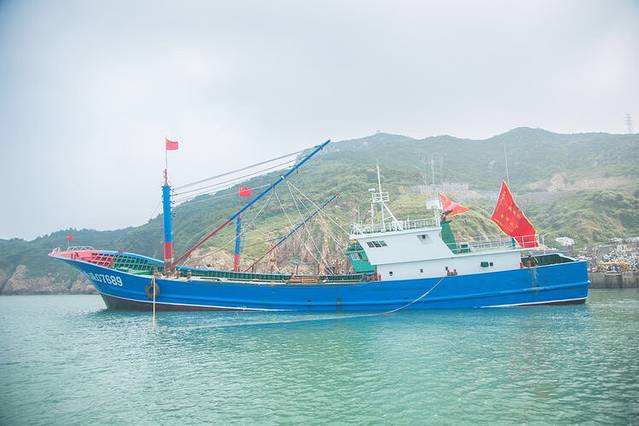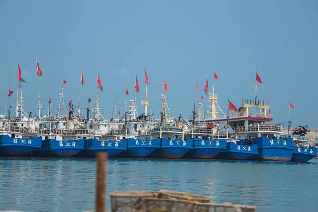 悬挂中国国旗的渔船~