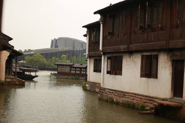 江南水乡的房子和船是特别好的朋友,他们常常一起洗澡。