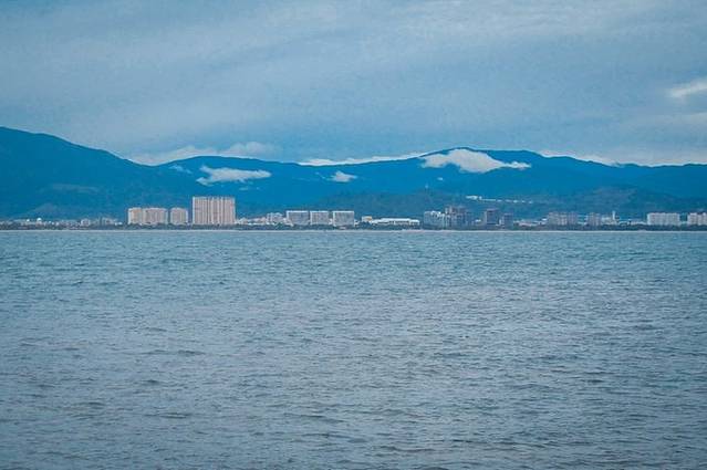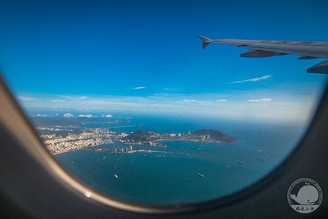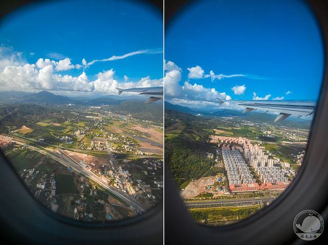 今次飞机飞的好平稳,看着窗外天气越来越好温度越来越热,于是我们每过半个小时就脱一件衣服。当飞机到三亚上空重新回落到云层下时,略过南海观音的上空,整个机舱都发出了惊叹,可惜不在我这边,喵了一眼,没及时拍下来,小遗憾。随手抓拍的景色也足以让我折服。