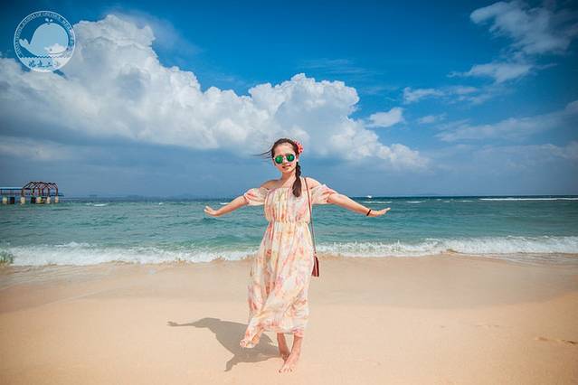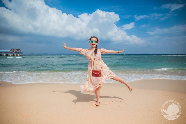 亚龙湾被誉为天下第一湾,是海南最南端的一个半月形海湾,沙质是由珊瑚和贝壳风化而成的,平缓宽阔,洁白如雪,细腻滑溜;脚踩在软软的、绵绵的沙子中,好似踏雪履棉,脚心有一种微微酥痒的感觉。听说北京奥运会时比赛项目的沙子都是从这里运过去的呢~来到亚龙湾,这才恍然大悟,昨晚三亚湾的沙那都不是个事!这里的脚感真的太好了,好想打滚啊~(~o ̄▽ ̄)~o 。。。o~(_△_o~) ~。。。