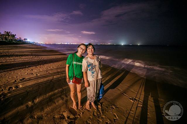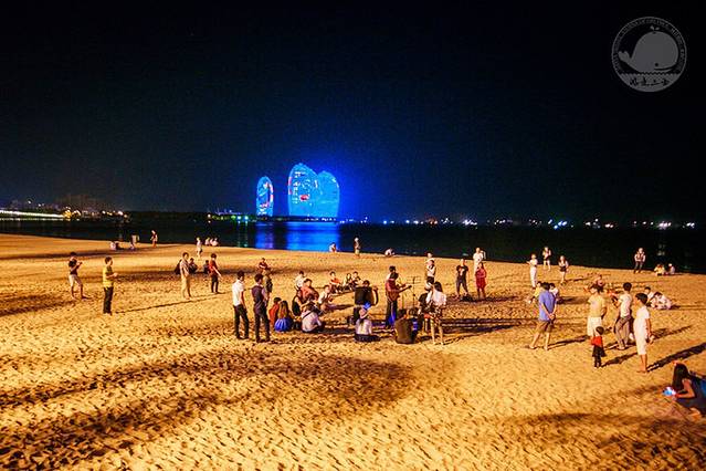 最后的夜晚啦,再不踩几脚中国最美的沙滩,下次就不知道什么时候啦。夜色笼罩,我们一行五人又齐刷刷的走在了三亚湾的沙滩上,任由海水抽走我们脚步下的泥沙,享受海水拍打小腿时的凉爽。萌萌的阿姨跟我玩起了潮型,惊艳全场*★,°*:.☆\( ̄▽ ̄)/$:*.°★*