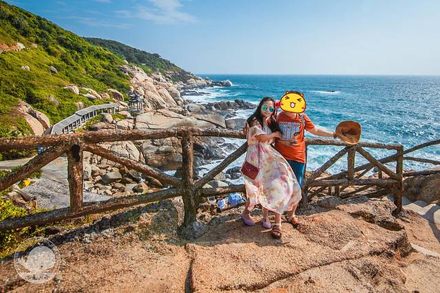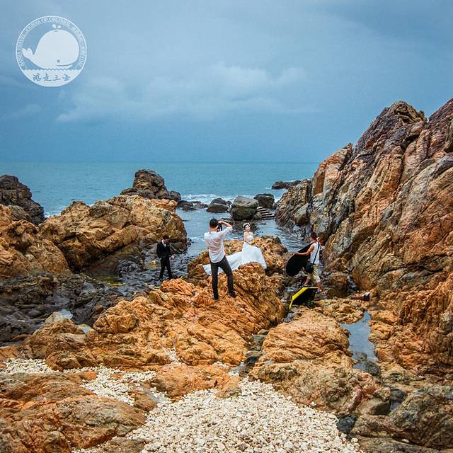 可能是天气的缘故,岛上的人并不多,基本都是拍婚纱照的人。牛王岭作为一个婚纱摄影点,那真是有一个得天独厚的优势啊,如此嶙峋的礁石,三亚此行我也就在这里看的到。