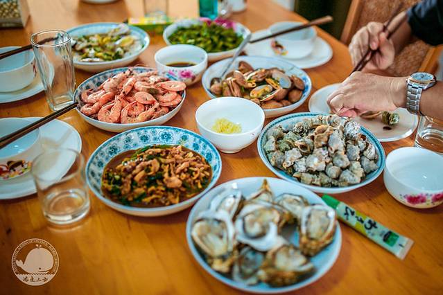 之后便是买菜买菜买菜,小郑之前说起,如果再早点,每天傍晚4-5点去逛这个凤凰镇桶井农贸市场,在市场后面的一条过道上会有很多小地摊,都是当地渔民当天打渔回来的收获,卖完就散,价格也实惠。我们去的时候已经将近6点啦,就零星几个小摊,也都是最后甩货了。我看到一条海马!小手臂那么长的海马!啊,长这么大第一次看到真的活海马!摊主开价100,让我们买去泡酒。泡酒什么的还是免了,但就是觉得好稀奇啊。你问我图呢?诶…..我脸皮薄,没好意思拍,悔不当初啊⊙﹏⊙