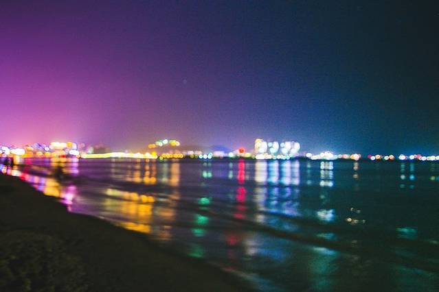 马路对面的夜排挡渐渐开张,咖啡馆的霓虹灯一盏盏的点亮,夜的喧嚣,喜欢这种氛围。停下车,在距离凤凰岛很近的一处沙滩上逗留了一会。三亚凤凰岛这么壕的地方我就不多说了,脚踩沙滩,隔着海张望一下就好了>_<