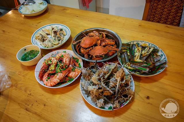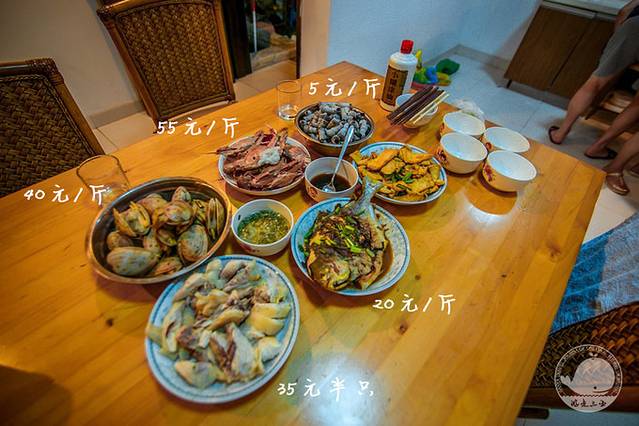 初来驾到,就怕水土不服,第一餐我们就收敛一点,晚饭没拍全,也就6菜1汤。图上是先烧出来的三个海鲜,后来都饿坏了,没来得及拍就被我们吃完了o(* ̄▽ ̄*)o 食材的口感都超级新鲜的。额外说下,虽然我会在每个海鲜上标价,但是也只是我当时买时成交的价格,并不代表实际行情哈,也很有可能我们被宰了>_<