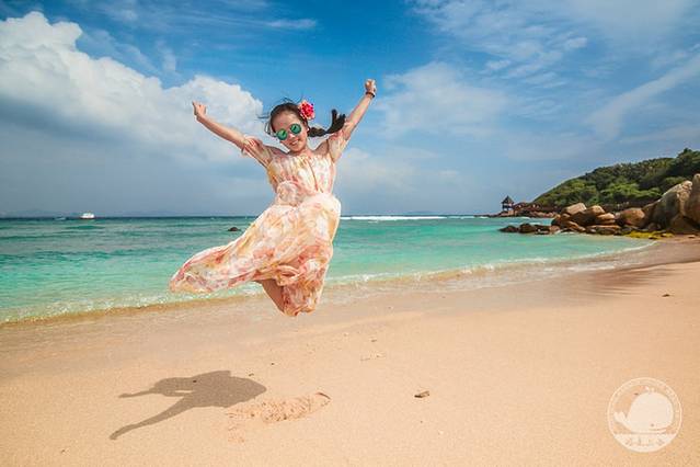 而夜晚十分,华灯初放,一日游的旅客都陆续离开了,整个小岛顿时安静下来,远远地能听见海浪扑打礁石的声音,树林中传出鸟儿的鸣叫,整个人都会放松下来,牵着恋人的手,漫步于沙滩,细细的白沙从脚趾缝中溢出,软软的,滑滑的,脑海中一片空白,仿佛所有的烦恼都已飘到九霄云外,此时所想的只是静静的体验属于你一个人的私有海岛。