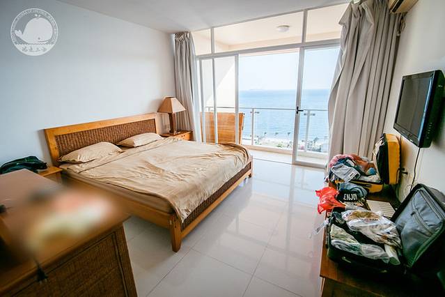 小郑直接带我们电梯直达顶楼15楼,开门入户,OMG,简直就被迎面而来的无敌海景给震慑呆了,一层餐厅客厅阳台正朝大海,180°正海景一下子展现在我们眼前,在房间里就可能看到大海的感觉炒鸡棒!安静下来还可以清楚的听到大海潮起潮落的声音——哗哗哗…