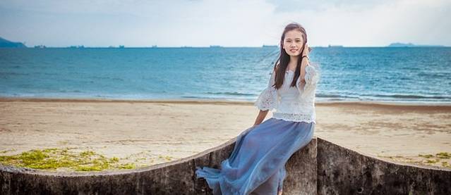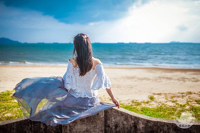 这是我从没见过的蔚蓝的大海,放眼望去,海天之间,只有一线之隔,就真如一幅会动的画一样,美到不真实。海浪用力的拍打着礁石,巨大的潮声在我心里回档,海风强劲,刘海飘飘,裙袂飞扬。