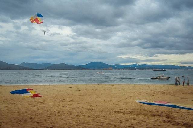 远看人家玩的海上拖伞真心刺激,是用大马力的快艇拉起降落伞,依靠快艇的快速前进使伞在空中飘扬,还会“点水”,待你双脚刚要碰到海水时再突然加速将你拖向空中这种“蜻蜓点水”似的玩法。280元/次,一次5-10分钟。玩拖伞时要看天气和风向,如果风大的话降落比较困难,还会落到海中,不过也是安全的。象鸟一样翱翔在天空,脚下是蔚蓝的大海,远处是起伏的山峦,自由飘荡在三亚的怀抱里,所有烦恼随风而去,飘呀飘,凡尘渐远。建议,想坐摩托艇的朋友直接玩飞伞,摩托艇的感觉没有拖伞爽~摩托艇150元/10分钟,可以两人一起坐。