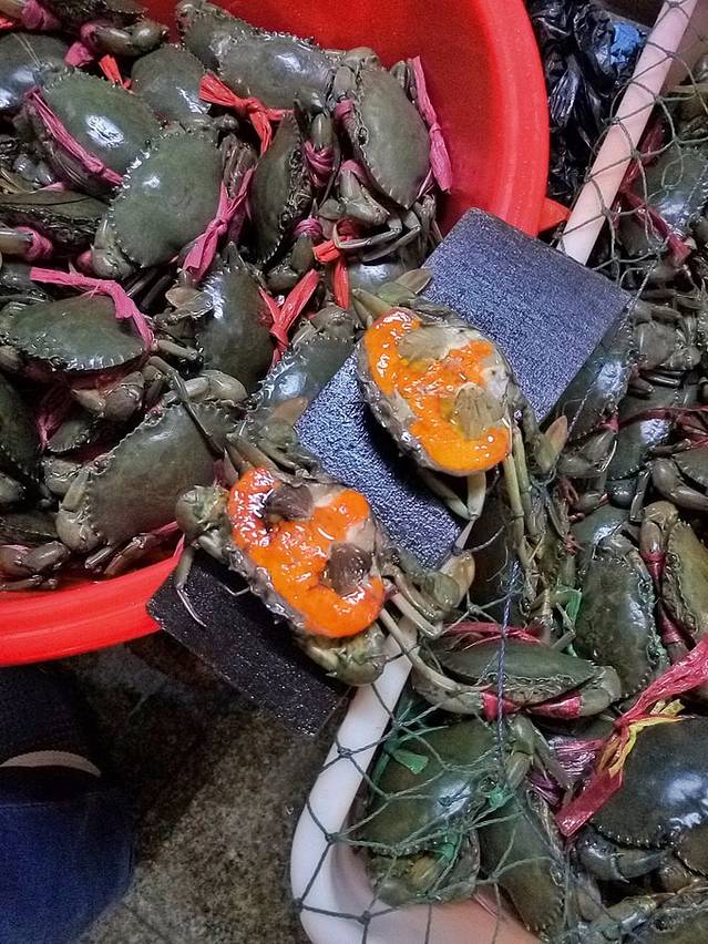首先就是和乐蟹,是青蟹的一种,但是膏满肉肥的程度,其他青蟹完全不可比,几乎是整个的覆于后盖,犹如咸鸭蛋黄,口说无凭,看图你会懂的!