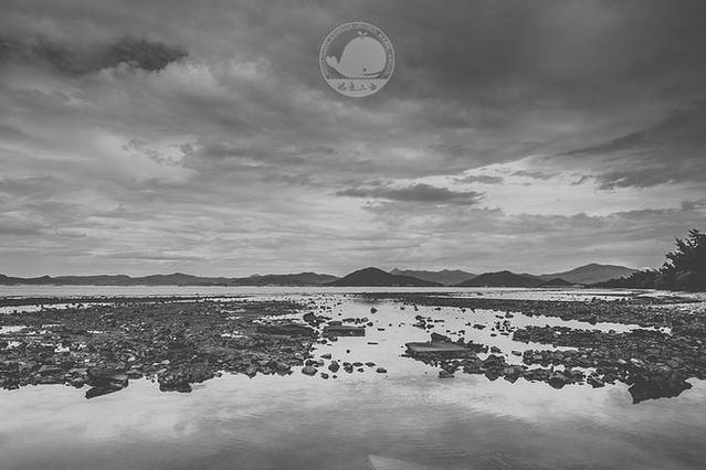 牛王岭这个小岛的岸边都是礁石,没有沙滩,但是景色非常不错,阴天没有蔚蓝的大海,没有关系,海依旧水很清澈,图上这片滩涂,可以光着脚走出去很远,当然,安全第一。