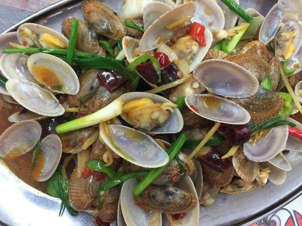 第一市场是一个神奇的地方,这里永远都是人潮攒动,当地人、外地人、外国人各种类型的人都在这里出没,当然绝大多数都是为了吃海鲜来的,这里海鲜种类繁多,路边林立大量海鲜代加工小饭馆,三亚知名的当地小吃清补凉、抱罗粉、椰子饭什么的这里全都有。基本上外地人占大多数,当你进入这片区域之后很快被各种小商小贩包围,这些都是向你推销自家的吃的和海鲜代加工生意的,我的建议还是从网上找口碑好信得过的店直奔而往,然后懂海鲜的人最好是自己去买去挑,再送到店里去加工,而不懂海鲜的,比如我和我的小伙伴,是跟着店家派给我们的人一起去买,买回来去店里加工,整体买下来感觉价格还能接受,当然如果还不放心最好还是先从网上查查价格,这里非常容易采坑。我和我的小伙伴两人都非海鲜控,吃的不多,一盘富贵虾(55块)、一盘芒果螺(30块)、6个扇贝(10块),4个生蚝(10块)‘两个海胆(10块),代加工费80块,一共195块,已经吃得很饱了,价格也算公道,味道很不错关键是。又留了点肚子尝了尝清补凉,我只能说,来三亚什么都可以不吃,但这个必须要吃尤其是夏天的时候,一碗下肚,晶晶亮透心凉啊!喝完直奔下一站,免税店。