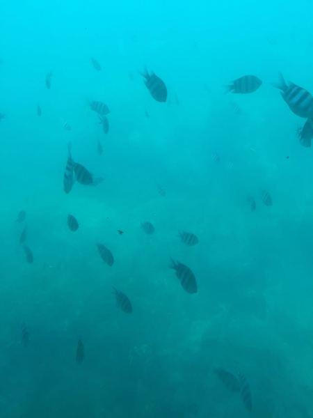可怜的是由于大姨妈来了水上项目全体不能玩,只能在海边坐坐走走,拍几张照片,还有就是坐海底船去海底游了一圈。海底世界的票是在蚂蜂窝上买的,比当场买便宜个好像20块,但要等一个小时才能上船。上船之后去珊瑚礁保护区看看海底的鱼、珊瑚和不知名的海底生物。海底的世界很丰富,我当时被惊呆了,有很多叫不上名字的热带鱼群和海底生物,我是个海洋知识的匮乏者,认识的只有水母、珊瑚,其他的一概叫不出名字,丢脸。。。