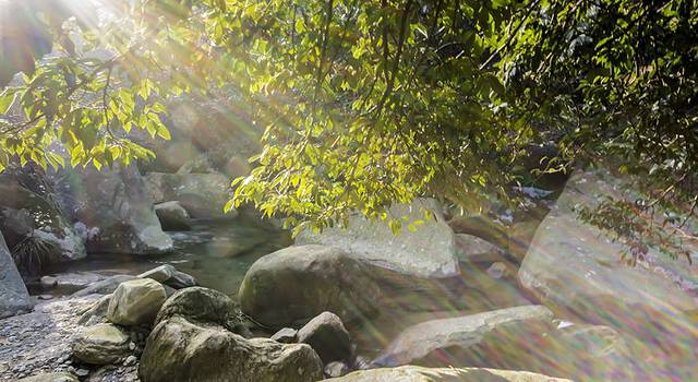 溯溪探险,独具一格。在山高林密的山涧中,两岸青山相夹中,流水潺潺中,仿如进入了世外桃园。
