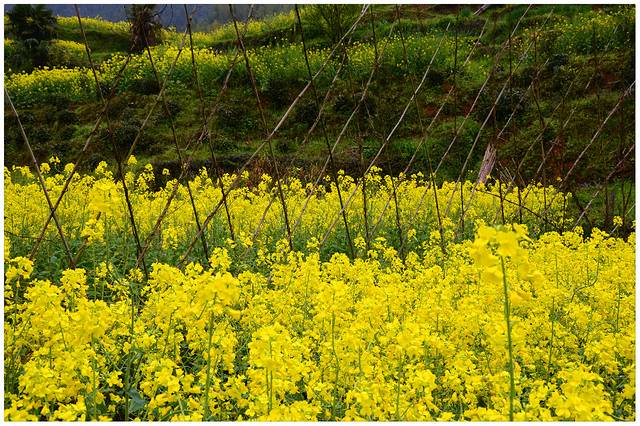 大片黄色花海,以及若干白色花绸缎~