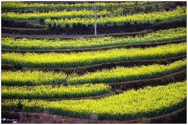 周五下班收拾完背包集合,大巴出发,第二天凌晨4点到达目的地,说来有些疯狂,另外对冒雨长途大巴的安全问题有些担心,领队半夜过后差不多半个多小时就跟司机大哥聊几句天,很负责任。其实我大概只小睡了两个小时,但丝毫没有影响后面的活动。 4点到达领队安排的农家吃点热乎乎的早餐便开始翻山头逃票进江岭景区,天蒙蒙亮的时候进入景区,片片的油菜花,拿起相机,然而关线太暗,只能叹息。