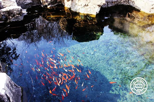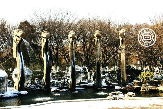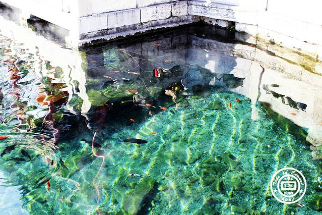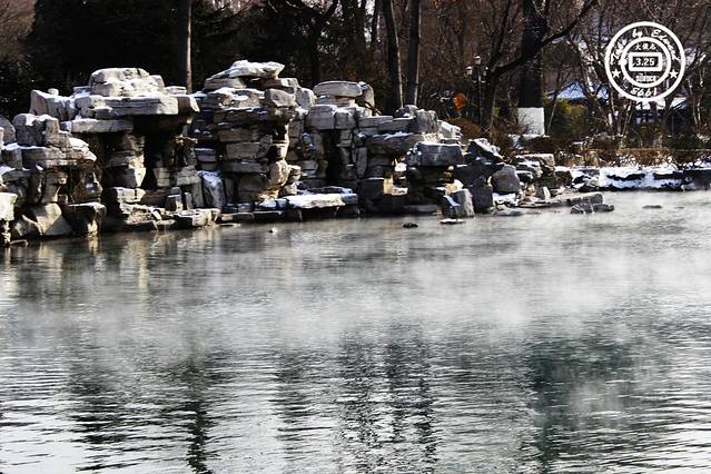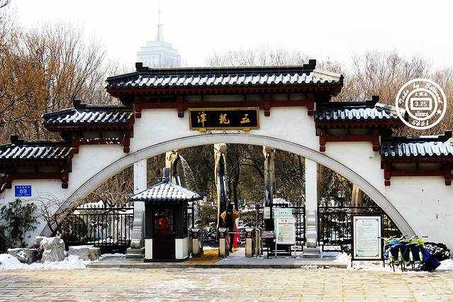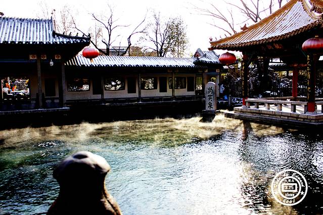 出了大明湖景区之后就去往了五龙潭,进门就是五龙吐水,五龙潭就没有大明湖那么大了,进门之后是草地和潭水,越往里边走也就发现越来越美。老舍笔下的冬天的感受也越来越强。潭面上飘着热气,水里的鱼儿在自由地游着,水特别的清澈,都可以看到底。水面上的热气特别大感觉就像电视剧里面在天庭里面走······