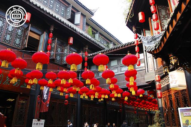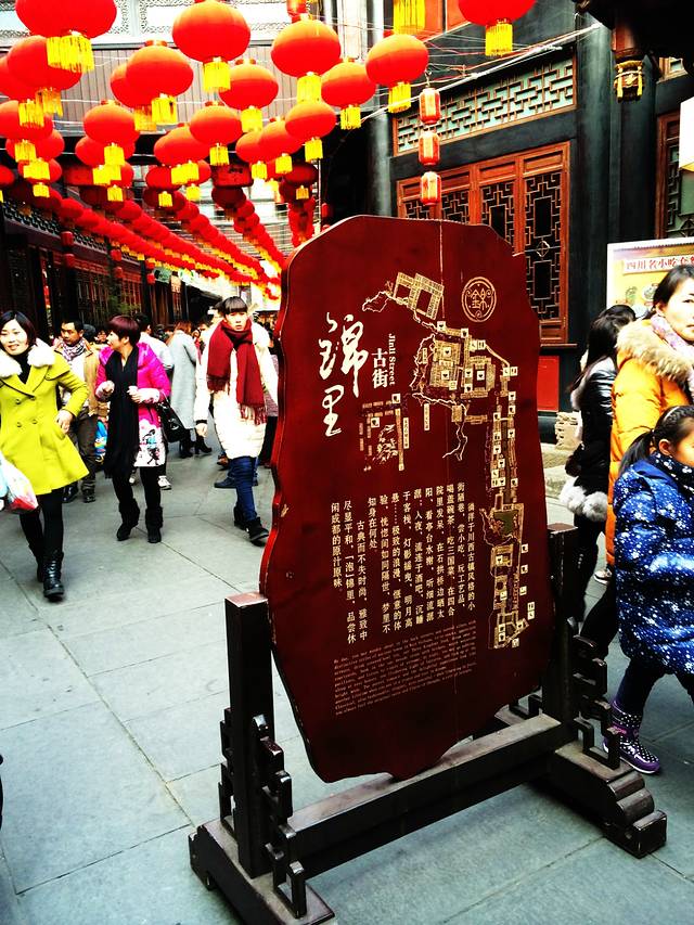 从武侯祠里面出来,就去锦里的人特别多,基本上你看到的都是人。在这里,你可以欣赏捏泥人、摆糖画的手艺,逛逛极富三国特色的店铺,有张飞牛肉,里面的服务员还专门办成张飞的样子。还可以到永远人头攒动的“好吃街”品尝四川名吃,也就是俗称锦里小吃一条街,里面有兔头什么的,还有茶楼、咖啡馆、酒吧、客栈等随时可落座。 黄昏时分,锦里会亮起灯,颇有韵味,适合拍照游玩。也可以到茶楼里坐坐看看戏,茶楼里基本上都有表演,特别是变脸,基本上都有最低消费,也就40元左右,来四川怎么也要看一看川剧变脸吧,在大剧院的票要几百,现在在茶楼里就几十,还是可以去看看的。我们就点了一杯茶看看看表演
