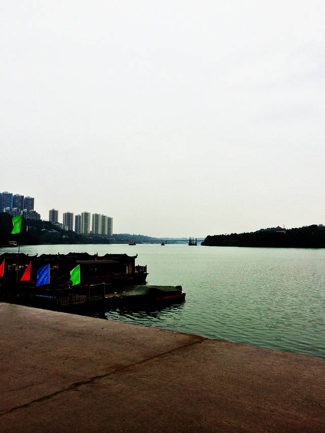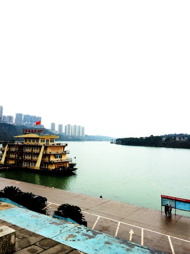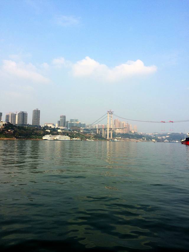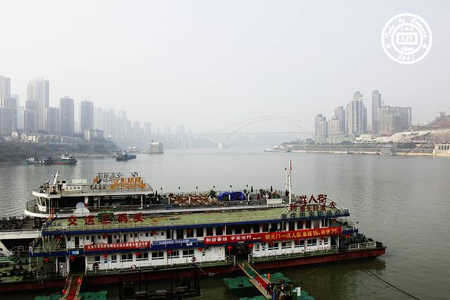 看了挺多电视电影都有朝天门,取景地都是朝天门,来到重庆我就更想去朝天门了。但是去朝天门的路途也很艰难,因为那边现在在修建,我是绕了半天才到那里,看到了朝天门。我是直接从洪崖洞走过去的。不是特别远。也顺便看看嘉陵江的风景。朝天门曾是重庆十七座古城门之一,现在其实是个超大广场及码头,有很多游轮,三峡游轮、观光游船和去洋人街的渡轮都从这出发。 我也上去坐了一次船。十五元到洋人街。25元来回。还有两江游 朝天门这里是长江和嘉陵江汇合之处,不过除非天气特别晴朗,才能看到两江交汇。我去的时候天气不是特别好,根本没有怎么看出来,但是嘉陵江得水特别清。朝天门这边还有两个展馆。现在朝天门这边在修建,到朝天门还是不是很方便了,要从边上绕进去。