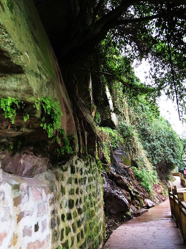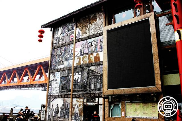 从解放碑到洪崖洞大概10分钟路程,很近,可以步行到达。走过去的时候你会发现重庆的楼梯真的好多。你会觉得重庆的楼梯实在是太可爱了,让你走的好累,你还想去看景。 洪崖洞是4A景区,但是是不收门票的,洪崖洞总共有11层,可以走过道到达每一层,也可以坐电梯。你会发现你坐电梯坐不明白了,你可以感受一下十一楼和一楼出去都是马路的特别。洪崖洞里边有很多商铺咖啡厅和酒吧,到了晚上是最热闹的。可以在这里边吃喝边看江景。我是白天去的,白天看起来就很不错了,感觉晚上有灯光就更美丽了。 建议晚上8点去洪崖洞看夜景,在底层的马路对面人行道上看就好,你就可以看到整个洪崖洞的全局,进里面是看不到全景的。还有边上有个瀑布,你可以上去看看