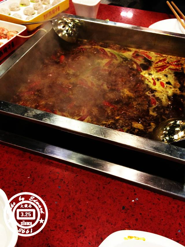 晚饭解决我们一起商量好了火锅,我先出来找地方的,看到了耍都,这边是小吃一条街,也有好多火锅店,看了挺多,我们最后是在老川坝子吃的火锅,还要排队,人还是挺多的。来到四川怎么也点红油火锅怎么去点鸳鸯锅,不过辣的真的特别的爽,第二天还感觉啦