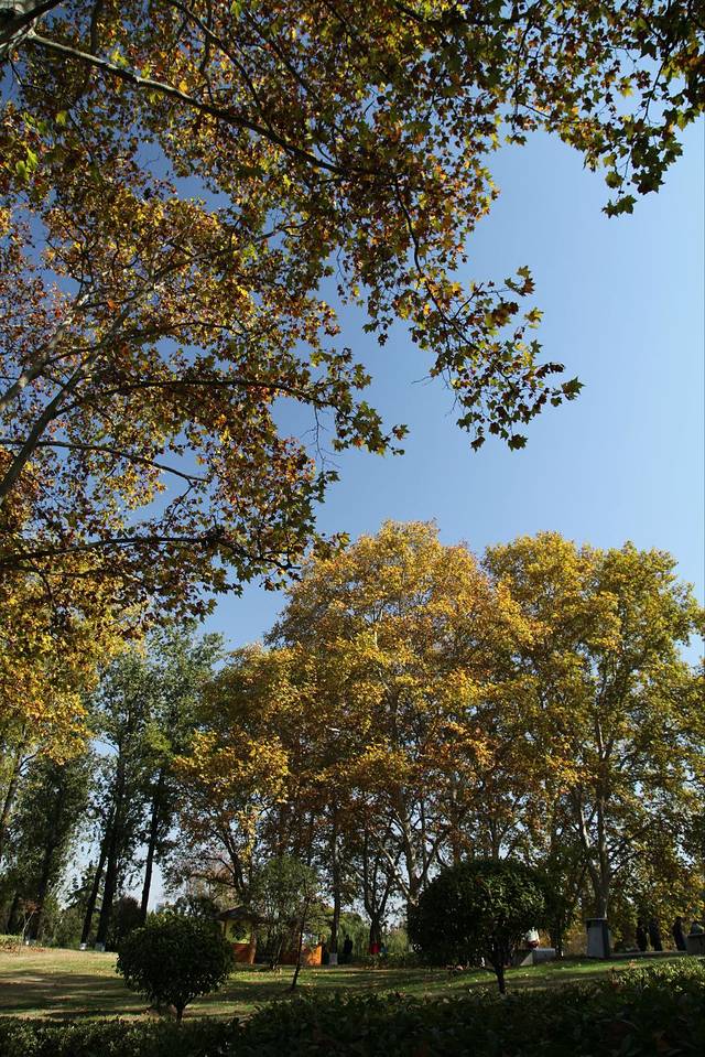 银杏树,如果背景是蓝蓝的天该多好,这时游人还很少。