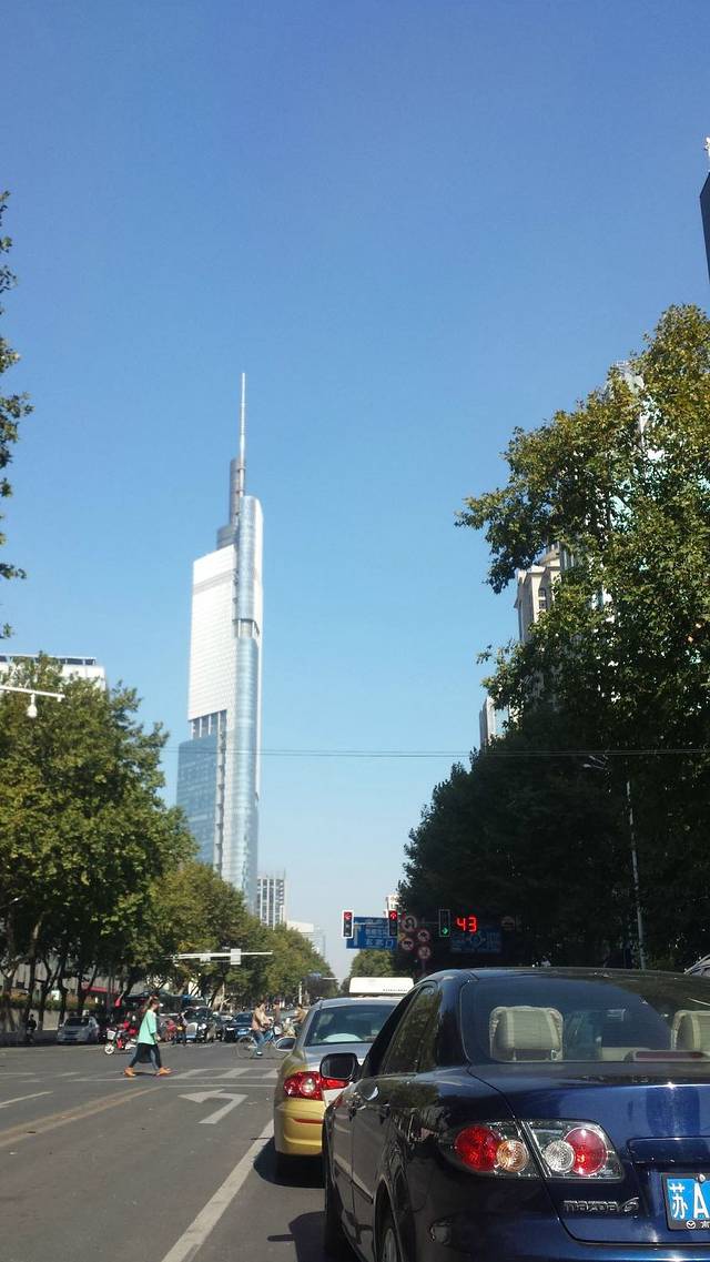 南京城难得见到好天气,街上行人、车辆很多。