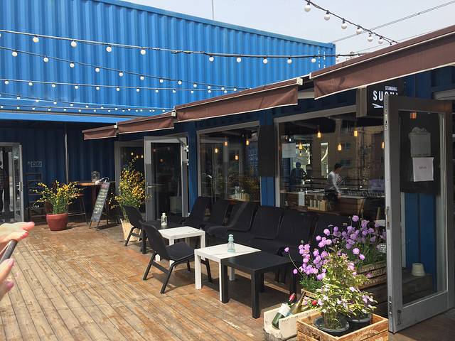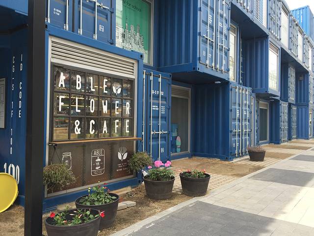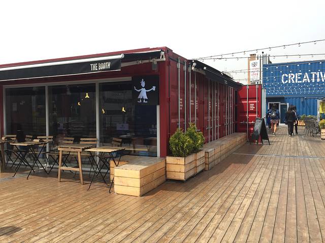 这是刚开业的由集装箱建成的商场,里面集合了很多韩国的潮牌。