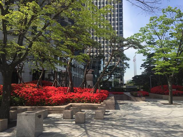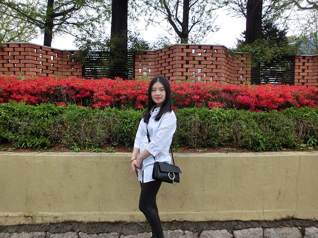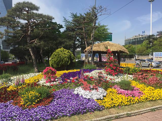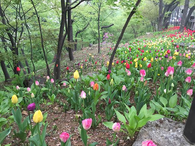 郁金香还是蛮好看的。四月中旬是韩国樱花季,那时候来可以看到大片樱花,本来我们是计划四月中旬来的,但pp的签证出了点小问题,晚了一星期来,结果树上只剩下绿色的。