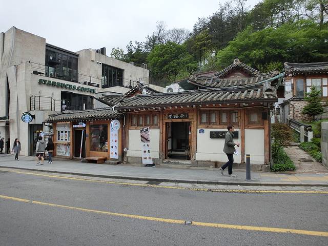 4.21 韩国是阴天。中午12:30到达韩国金浦机场,人很少,入境很快,从机场坐地铁到酒店大约30min。放好行李我们就打车到了三清洞开始逛。这里要说一下韩国的出租车分模范车和普通车,模范车车顶的牌子是黑色的,价格相对贵一些,大家打车时注意。从明洞附近的酒店打车到三清洞大约5000韩币。