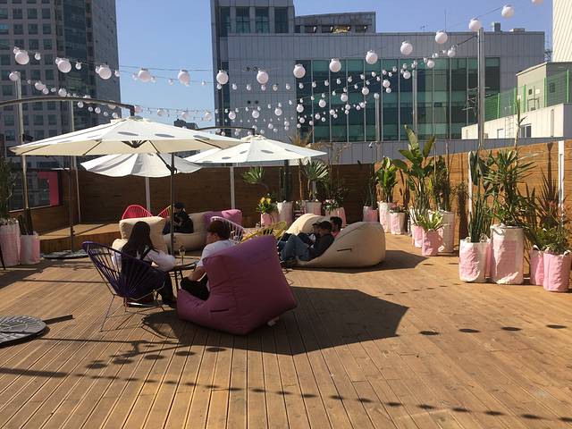 弘大也是遍布各式各样的小店。逛街找厕所找到一个很酷的小阳台。