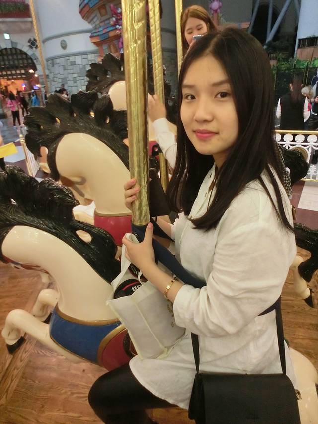 只有旋转木马不用排队,跟闺蜜做了一圈拍了拍照就准备走了。