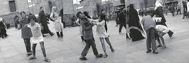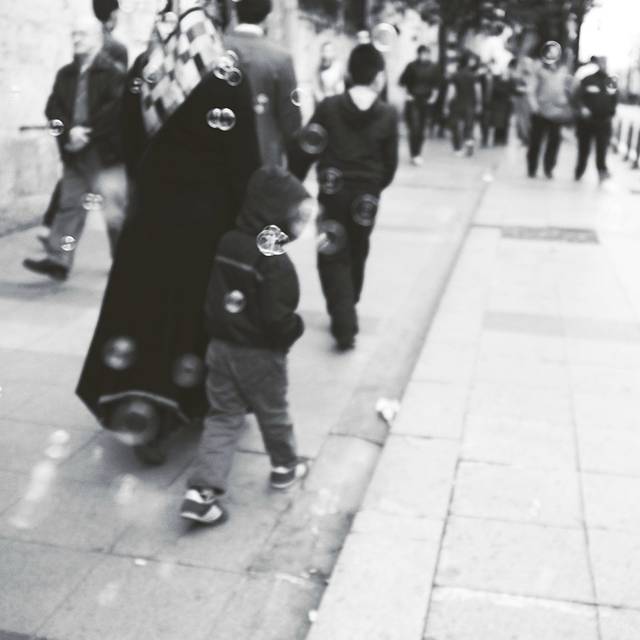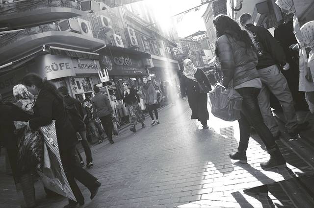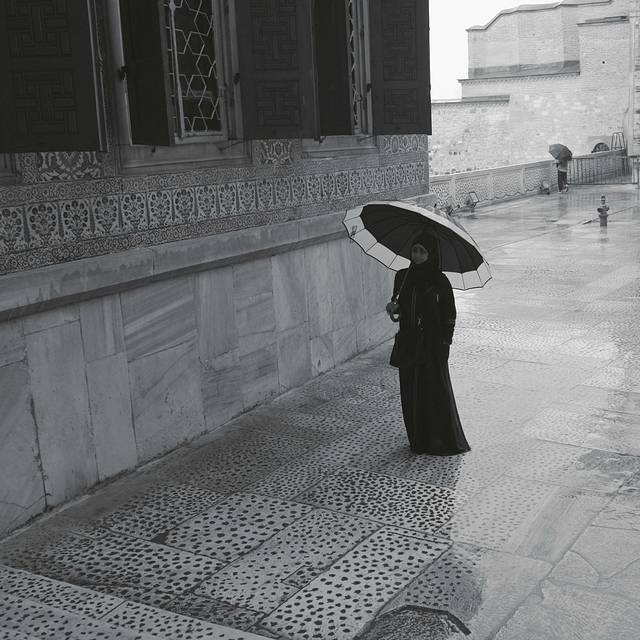大学外面碰到几个抱着书全身黑袍的穆斯林妹子,当时我在拍照,其中一个竟然跟我打招呼。但我也只能以微笑招手回应,毕竟,黑袍很有距离感,即便是一条不宽的马路,也很远。等我又走开了几步,又听到她们在后面喊(土耳其语)着,回头只见一个女孩没戴面纱对我微笑,还冲我招手叫我过去。这时,另外2个抱着书本的黑袍女狠狠的砸那个女生的头……