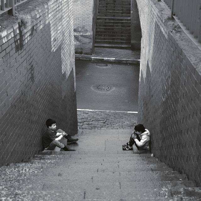 这对情侣视线没有交集,他们中间有个粗鲁男孩。
