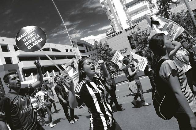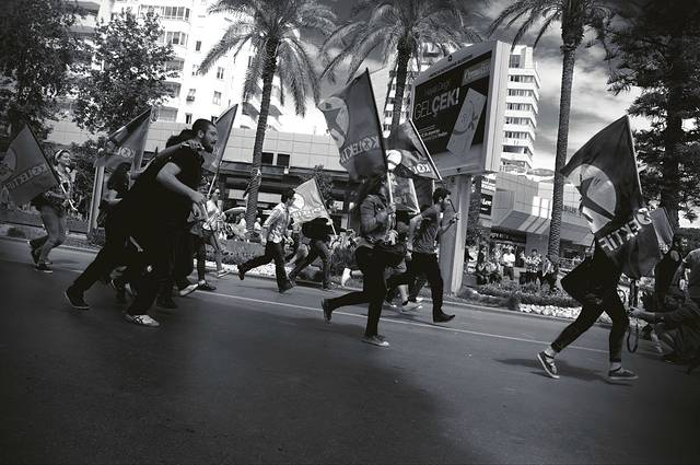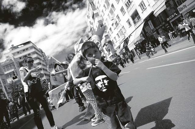 游行队伍特长,整个Culluk Cad都装不下。整个游行也是从Culluk Cad和Yener Ulusoy Bul交叉的十字路口开始的,一直通往海边Selekler。
