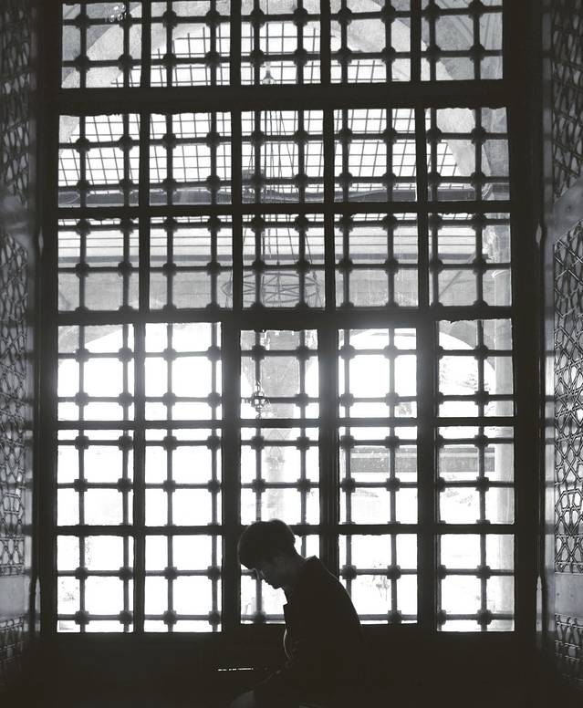 “啊呀索菲亚”大教堂内的保安,从一个小窗口拍过去更像画?