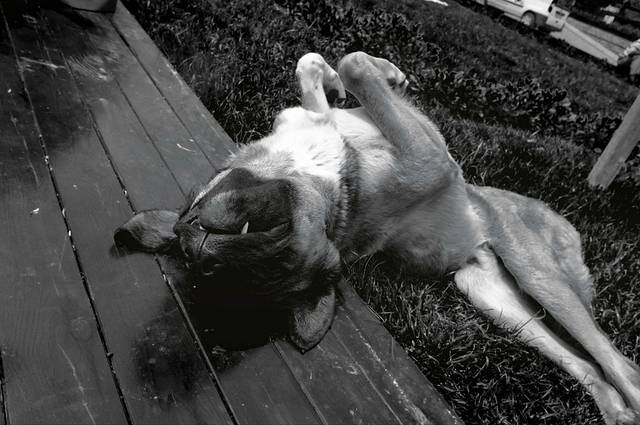 不用到处翻食物,这里的狗也变的很懒,整天都躺着,像不搞这种艺术要死的狗。