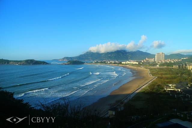 朱家尖的景点很多,但是景点都不集中,只靠步行和公共汽车逛完朱家尖所有的景点都是不现实的,而包车又太贵,像大青山之类的景点就只能留着下次自驾再去了。我们咨询了酒店工作人员,了解到朱家尖海滩主要是南沙和东沙,南沙要门票,东沙免费,所以我们第一天下午决定先到东沙看看。