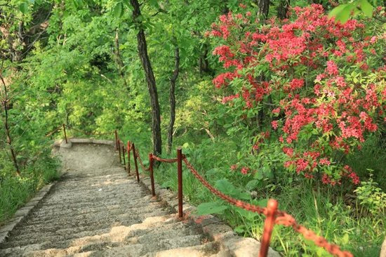 每年春天西泰山中十万顷野生杜鹃竞相开放,漫山红遍,9公里长的杜鹃花长廊若云霞般绚丽灿烂,与青山绿树交相辉映,勾勒成一幅醉人画卷。