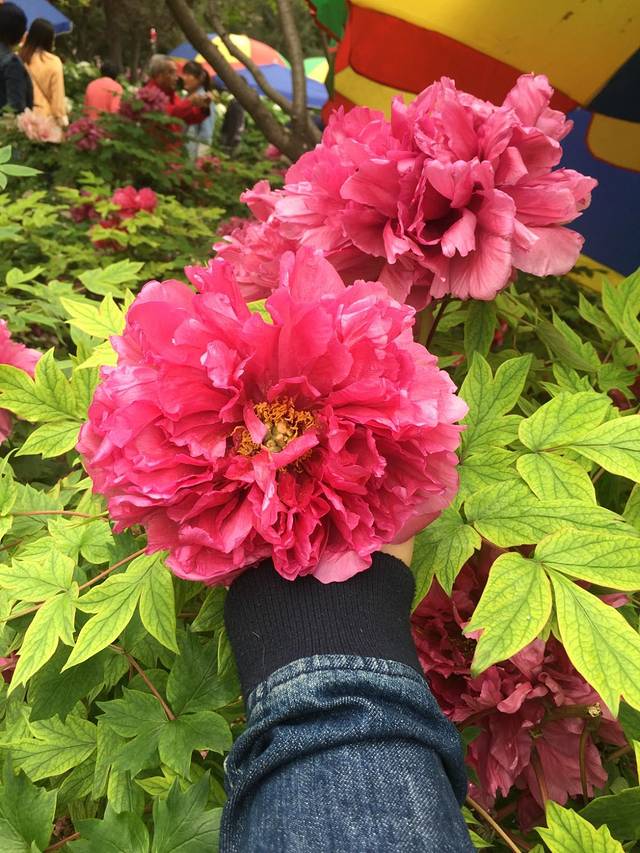 本次出行洛阳为的就是观赏牡丹,周五晚上到洛阳时下雨,和青旅老板聊天后得知周五的雨堪称暴雨,因此露天的牡丹花都被打蔫了,所以将观赏牡丹的形成安排到了周日,到达国花园以后看到的果然是,有很多牡丹花都败了,不过好在有人工的棚子保护,另外的很多牡丹花都还艳丽地开放着。虽然别的地方也有牡丹,但若说开的最好的还是洛阳这个牡丹花城,牡丹花开的比脸大,双手捧着才能放得下,这方水土真是妙极了!