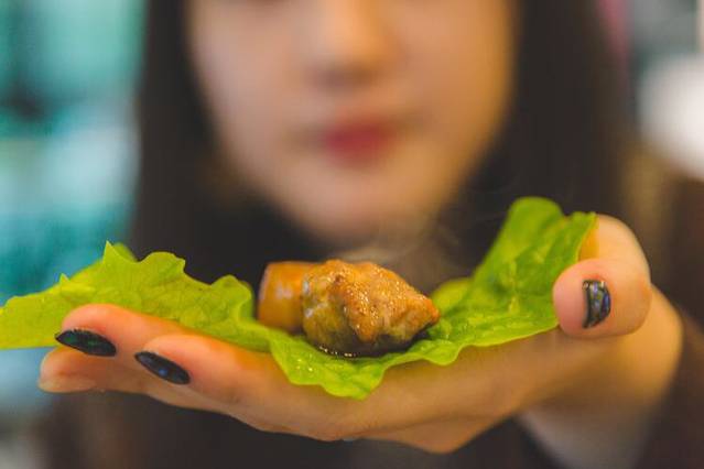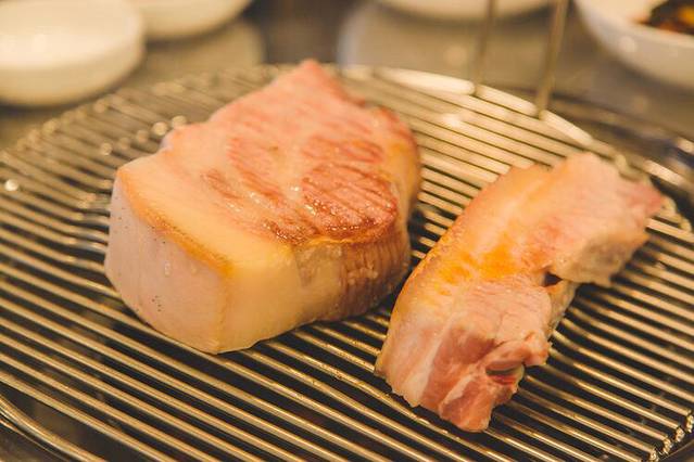 韩豚家的黑猪肉肉质特别细腻,瘦肉不会卡牙,肥肉香而不腻,肉皮很有嚼劲。和在一起吃,口感赞。