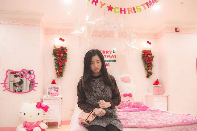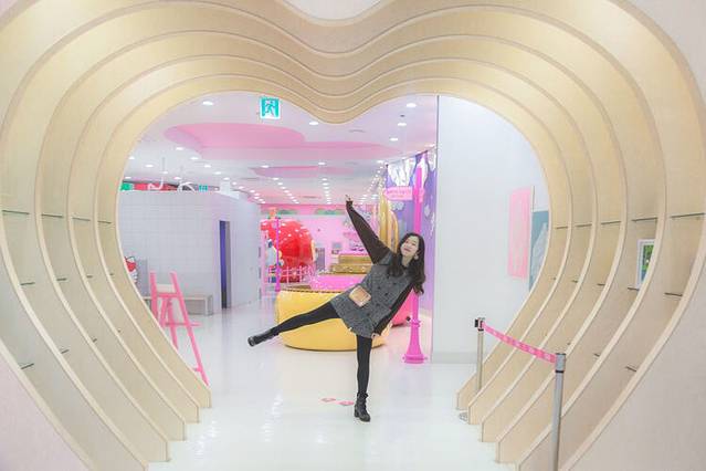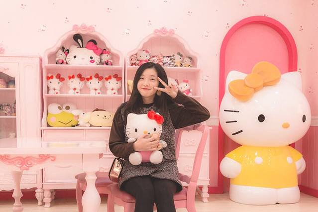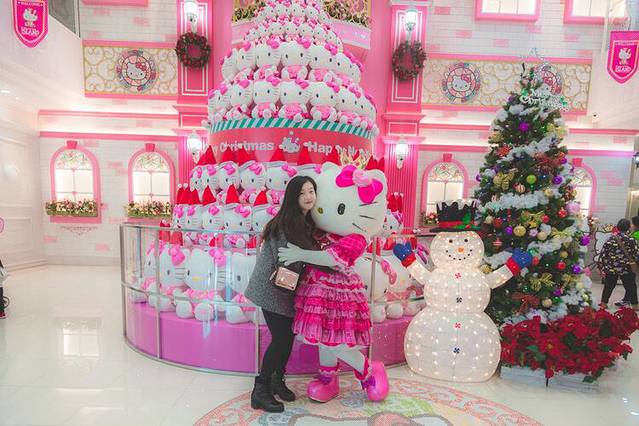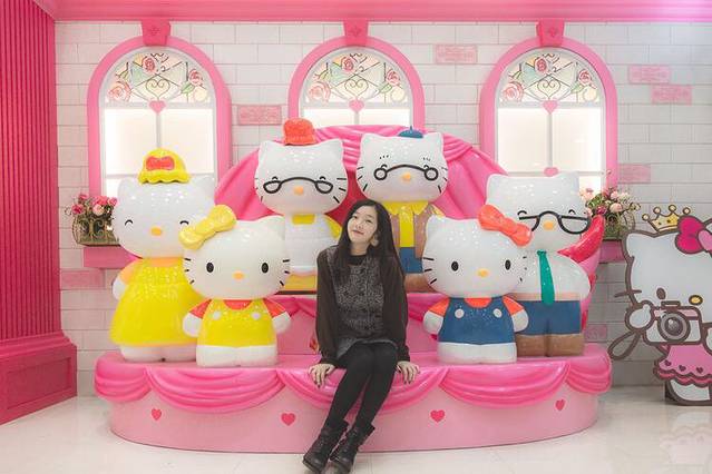 一进大门简直粉醉了,小朋友们排队和hello Kitty合照,我也要。