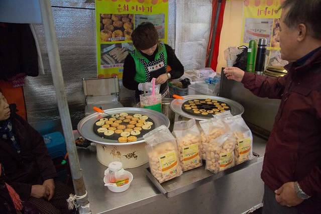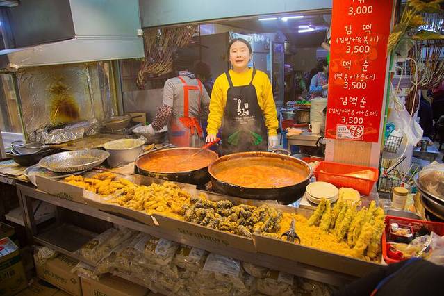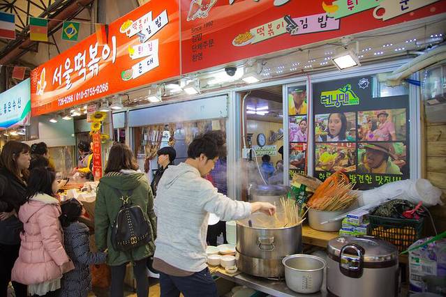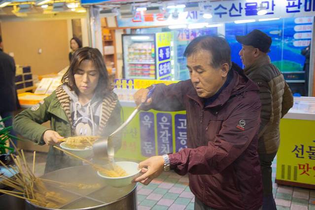 师傅带我们来到东门市场里的这家小吃店,超级好吃,据说是济州岛最棒的,小小的店里挤满了人,看~~~running man 也来了。
