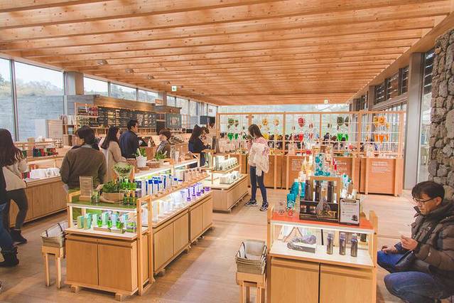 绿茶博物馆旁边还有一栋隐藏在大自然中的建筑:悦诗风吟济州小屋,大家在体验手工皂制作,我也想玩,可是我们没有时间了~