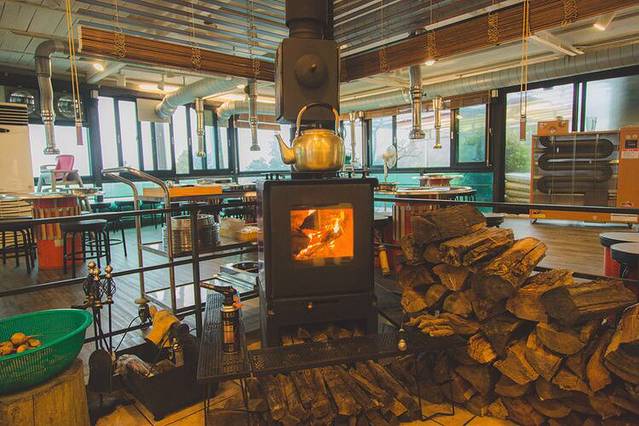店里的小壁炉滋滋地响,特别温馨。