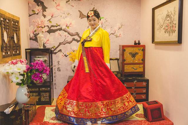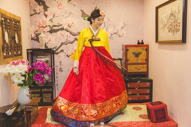 最后一站,摄影师决定圆我穿韩服的梦😄在大众点评上看到这家韩服体验店,就在乐天免税店对面的三楼。一进韩服馆,老板娘是个小姑娘,在学中文,她还以为我是韩国人。